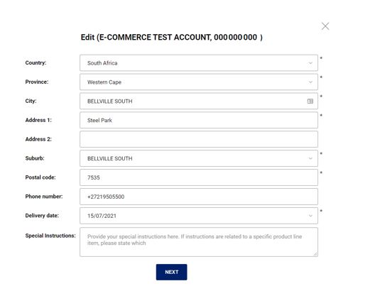 b) A pop up will appear and allow you to edit your details. Edit the address and click on “NEXT” to confirm the change.