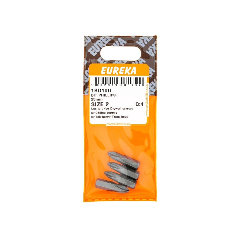 • BIT PHILLIPS 25MM SIZE 2 SCREW 3-4.8MM Q:4 EUREKA