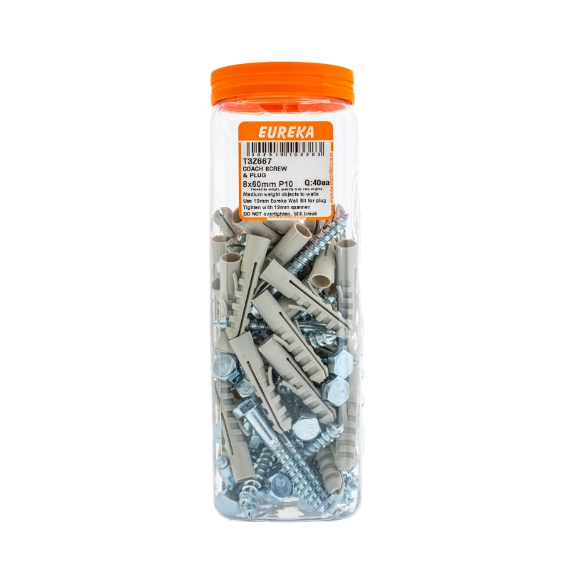 COACH SCREW & PLUG 8X60MM (PLUG 10MM) Q:40 EUREKA