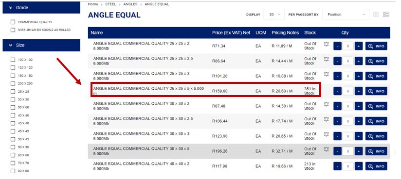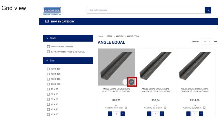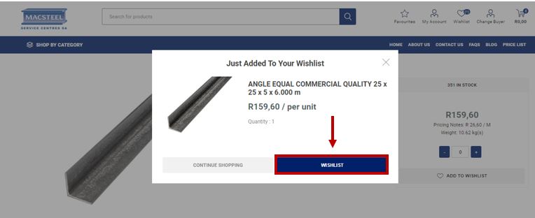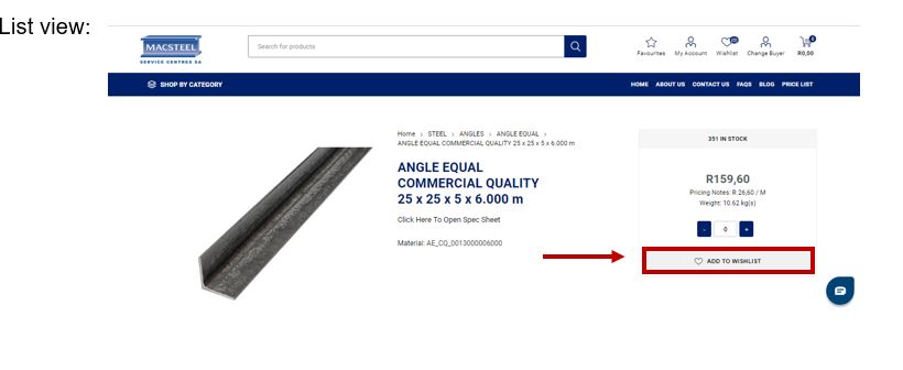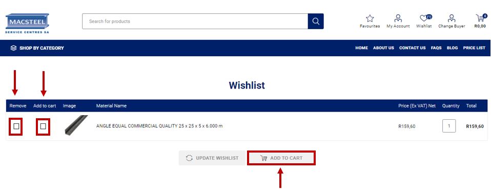a) Click on the "Shop by category" button and navigate to the material category and click on the items which you wish to add to your Wishlist.