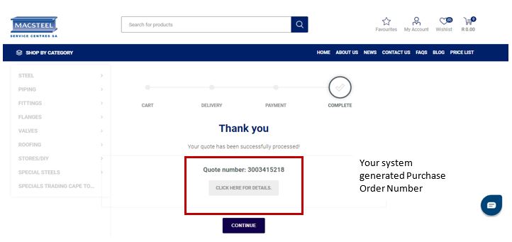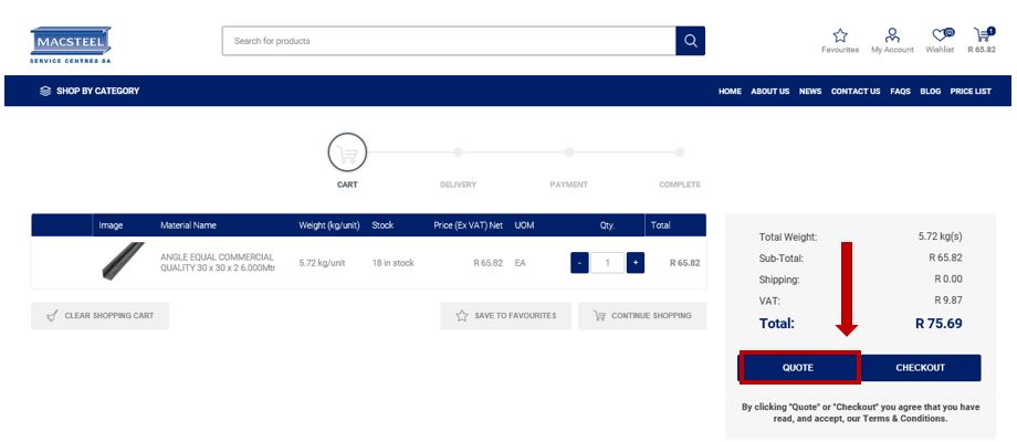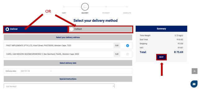c) Once you have selected “Quote”, you will need to select your delivery method - delivery or collection. Then click the "Next" button.
