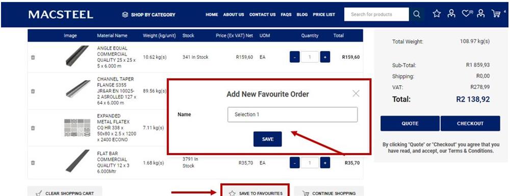 a) To create a favourites list of items ordered on a regular basis, you first need to add all the products you wish to add to the list, to your cart. Click on the relevant category and sub-categories, then navigate to the products you require and add these to your cart.