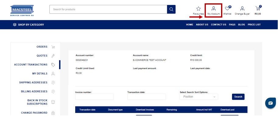 c) To view the products that you have requested to be notified about when they are back in stock, click on the "My Accounts" icon and then on "Back in Stock Subscriptions".