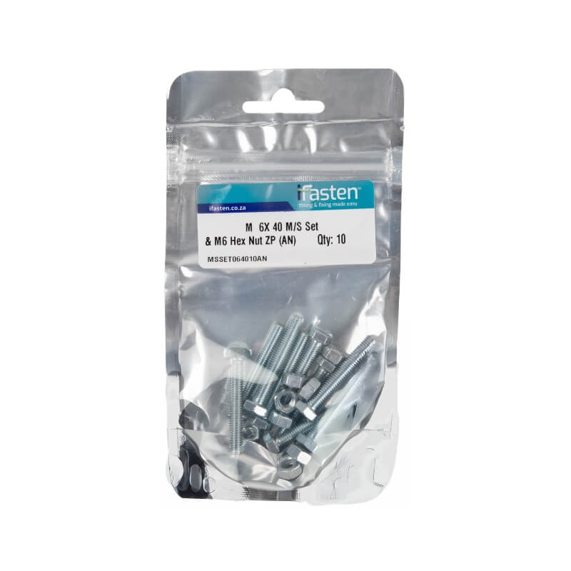 • NUT 6MM & BOLT 40MM MILD STEEL ZINC PLATED Q:10 IFASTEN