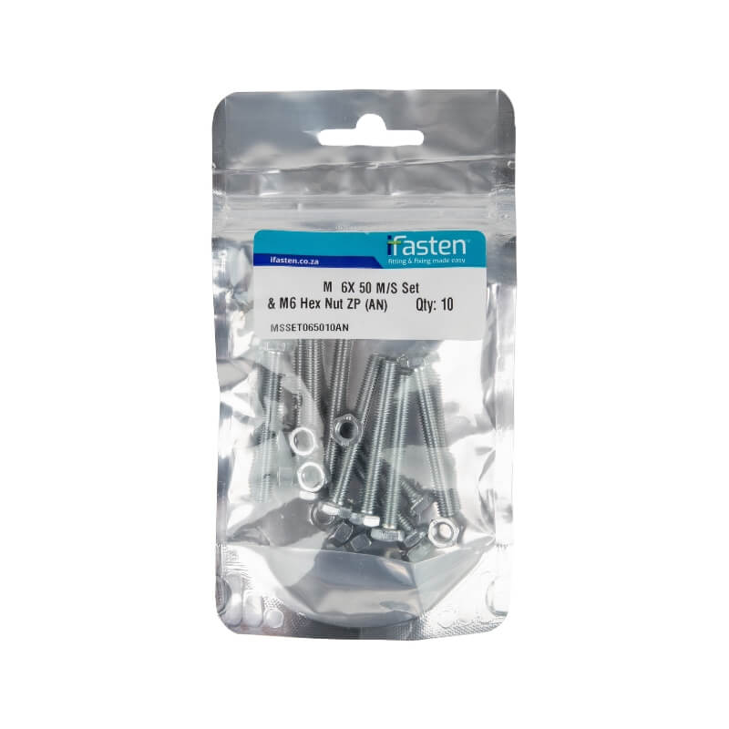 • NUT 6MM & BOLT 50MM MILD STEEL ZINC PLATED Q:10 IFASTEN