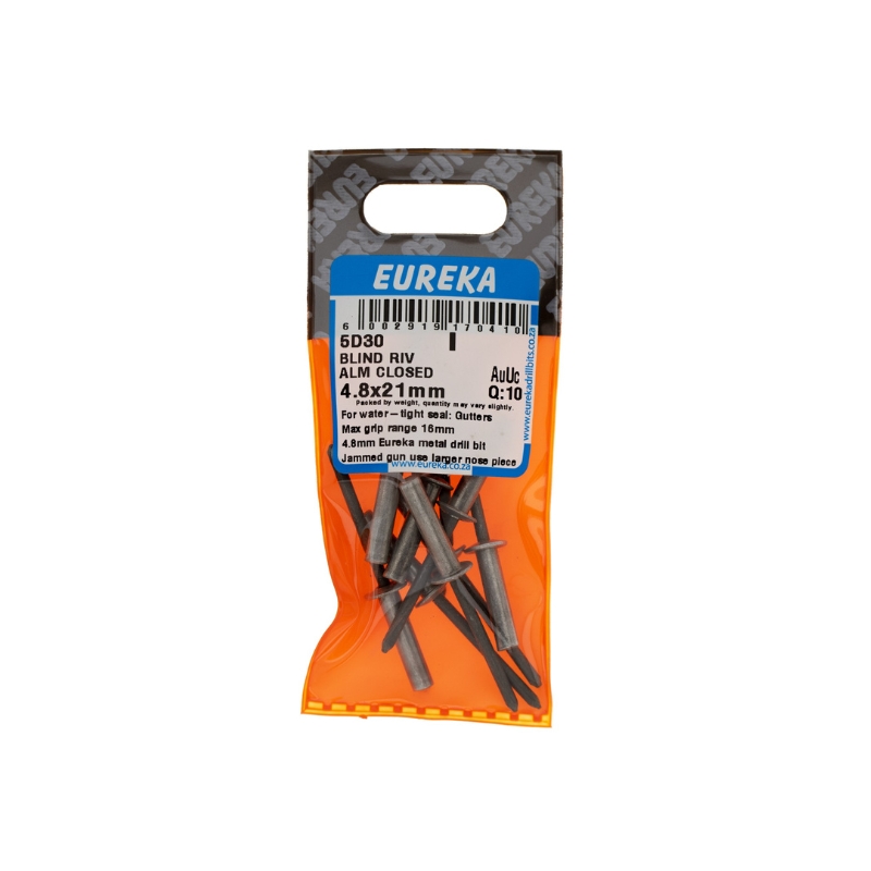 RIVET BLIND ALUMINIUM CLOSED 4.8X21MM Q:10 EUREKA