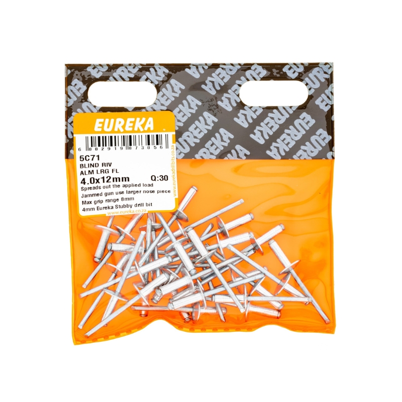 RIVET BLIND ALUMINIUM LARGE FLANGE 4.0X12MM Q:30 EUREKA