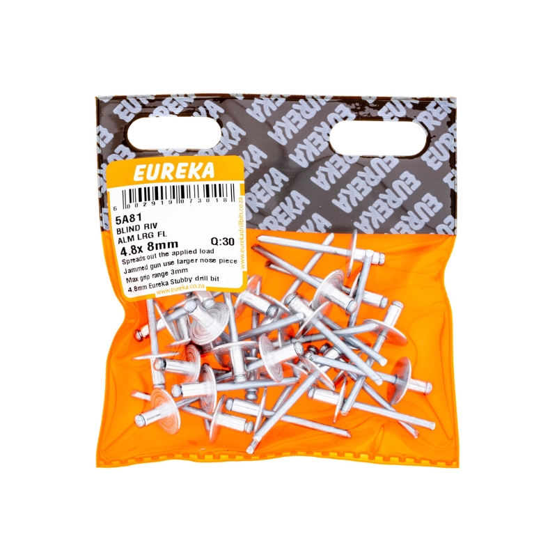 RIVET BLIND ALUMINIUM LARGE FLANGE 4.8X8MM Q:30 EUREKA