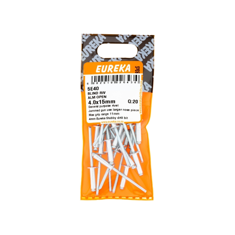 RIVET BLIND ALUMINIUM OPEN 4.0X15MM Q:20 EUREKA