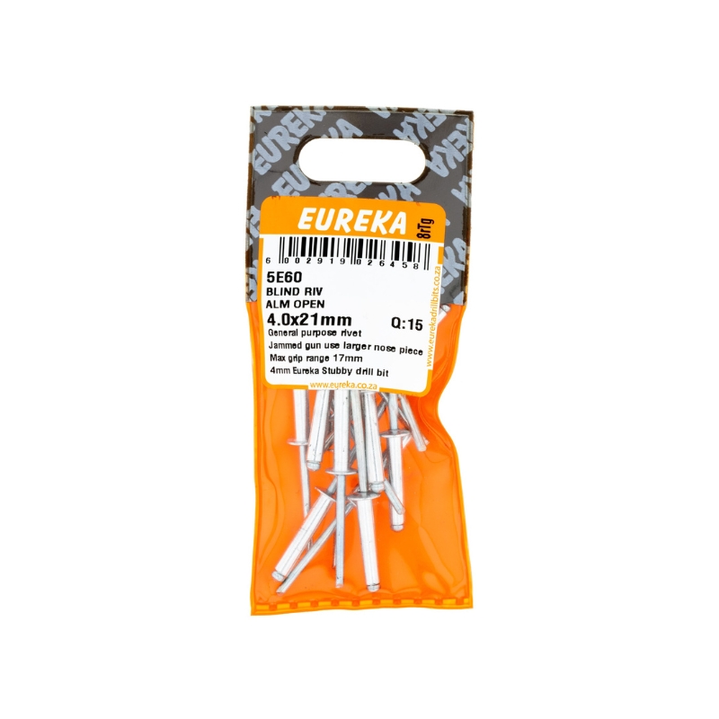 RIVET BLIND ALUMINIUM OPEN 4.0X21MM Q:15 EUREKA
