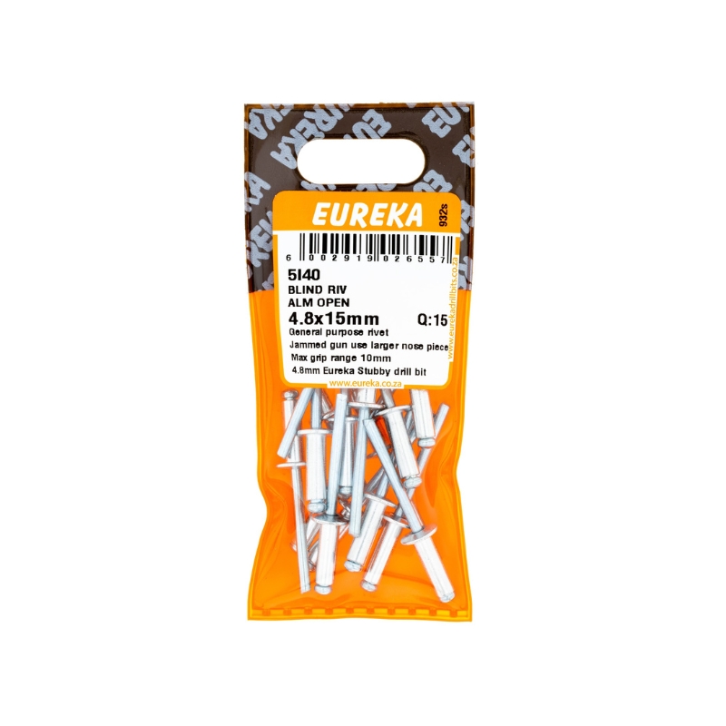 • RIVET BLIND ALUMINIUM OPEN 4.8X15MM Q:15 EUREKA