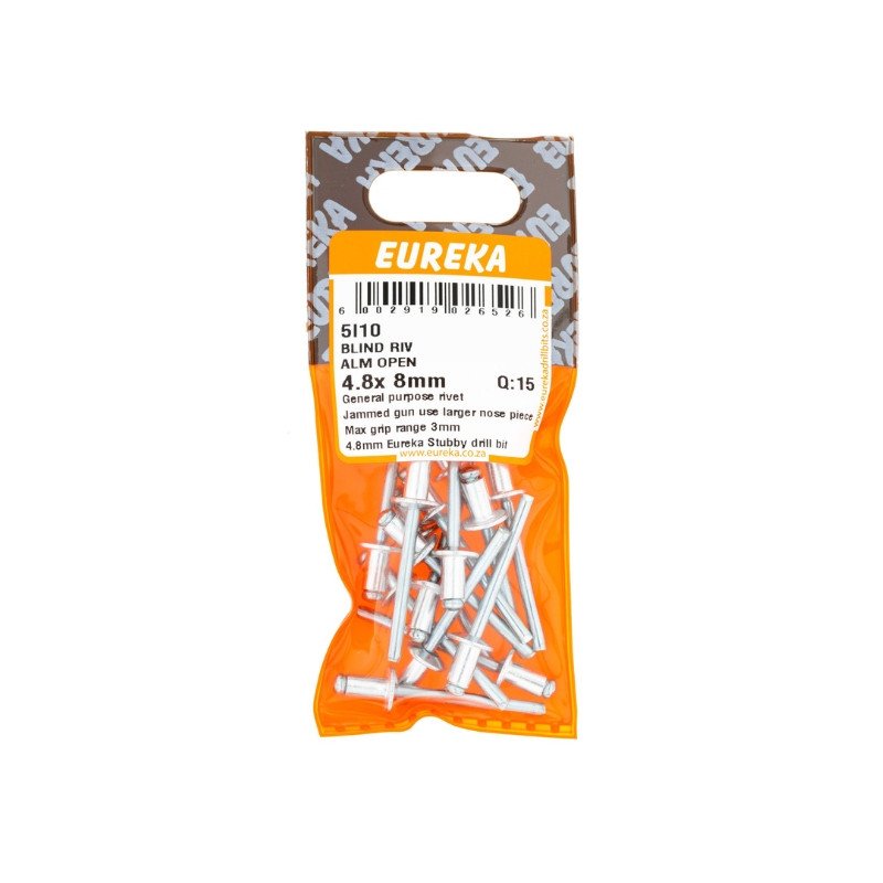 • RIVET BLIND ALUMINIUM OPEN 4.8X8MM Q:15 EUREKA
