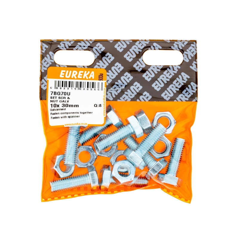 • SET SCREW & NUT GALVANISED 10X30MM Q:8 EUREKA