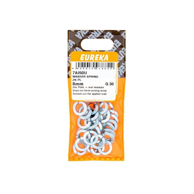 • WASHER SPRING ZINC PLATED 8MM Q:30 EUREKA